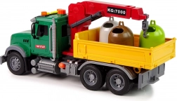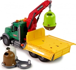 Tento detailně zpracovaný popelářský kamion převeze vše potřebné – od přiložených kontejnerů až po drobné hračky. Zadní návěs je vybaven pohyblivým jeřábem, který snadno zvedá a pokládá kontejnery. Na střeše kabiny najdete ovládací tlačítko pro aktivaci ramen jeřábu a efekty.