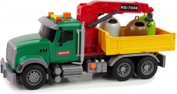 Realistické světelné a zvukové funkce (majáky, klakson, couvání) dodají hře pravou atmosféru pracovních strojů. Hračka má edukační přínos – děti si osvojí zásady ekologie a třídění odpadu, rozvíjejí jemnou motoriku i fantazii.