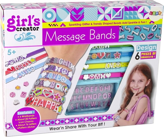 Obsáhlá sada obsahuje všechny potřebné komponenty k vytvoření personalizovaných náramků. Může tvořit náramky se jmény nejlepších přátel a darovat je jako originální dárek.