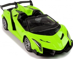 RC sportovní auto 1:18 v atraktivní zelené barvě potěší malé i velké fanoušky rychlých kol. Ovladač s dvěma páčkami umožní snadné manévrování – jízdu dopředu/dozadu a do stran. Gumové pneumatiky zajišťují dobrou přilnavost a plynulou jízdu na hladkém povrchu. Model je lehký, odolný a připravený na každodenní hraní.