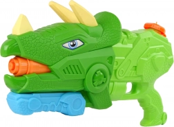 Představujeme vám vodní pistoli Dinosaur Triceratops s kapacitou 1330 ml vody a dosahem až 8 metrů. Tato pistole je ve tvaru dinosaura, zeleno-oranžové barvy, a vypadá jako postava z oblíbených dětských filmů.