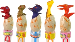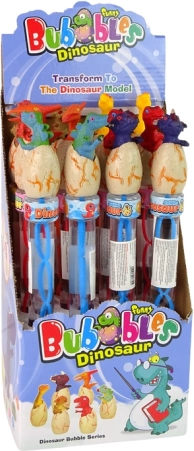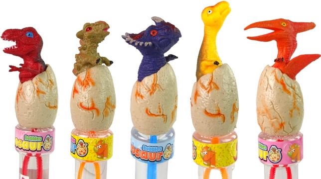 Každá lahvička má podlouhlý tvar s víčkem ve tvaru dinosaurů ve vajíčku. K dispozici je 6 druhů (pterodaktyl, T‑Rex, triceratops, stegosaurus, brachiosaurus, ankylosaurus) v různých barvách. Obsah je bezbarvý a certifikovaný dle CE/EN 71 pro bezpečné používání.