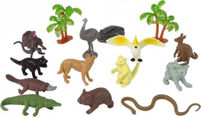 Součástí sady jsou klokan, koala, krokodýl, emu, papoušek, had, ptakopysk, wombat, ďábel medvědovitý (tasmánský), ještěr, liška pouštní, 2 stromky a skála – vše pro tvorbu vlastního australského světa.