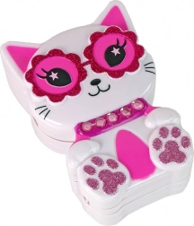 .Paletka na líčení ve tvaru kočičky je kromě funkčnosti také roztomilou hračkou pro malé holčičky, které se chtějí cítit jako opravdové vizážistky. Tato barevná paletka je vyrobena z materiálů bezpečných pro děti. Obsahuje rtěnky, oční stíny, lesky a tvářenky.