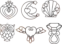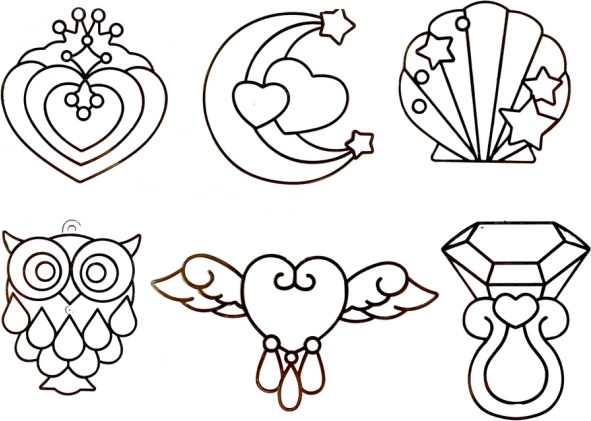 Sada obsahuje 6 průhledných závěsků s různými tvary – skvělé pro výrobu přívěsků, ozdob do okna i klíčenek.