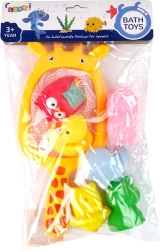 Tato zábavná a barevná sada je ideální pro koupání nejen ve vaně, ale také v zahradním bazénku. Je dokonalým řešením pro rodiče, jejichž dítě má strach z vody a nemá rádo koupání. Díky pestrým hračkám ve tvaru zvířátek si děti na vodu rychle zvyknou. Hračky mají malé otvory, ze kterých po stisknutí vystřikuje voda, což děti jistě pobaví. Můžete vymyslet hru, při které se snažíte chytit všechna zvířátka do sítě, přičemž člunění vody činí lov ještě napínavější.