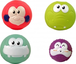 Tato sada obsahuje čtyři gumové míčky se zvířecími motivy, jako jsou krokodýl, hroch, ryba a opička, které při stlačení vtipně vystřikují vodu. Síťka na basketbal má zip a snadno se z něj stane úložný prostor pro hračky. Rychlé schnutí zabrání tvorbě plísní.