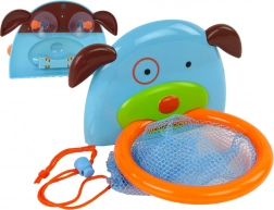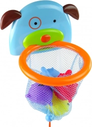 Tato koupací hračka promění chvíle ve vaně v zábavu. Dítě hází míčky nebo gumové rybičky do basketbalového koše s podobiznou psíka, čímž rozvíjí svou koncentraci a motorické dovednosti. Hračka má přísavky, které snadno přilnou k hladkým povrchům, takže ji lze připevnit na kachličky nebo sklo.
