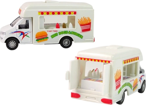 V sadě najdete dva modely camperů. Jeden funguje jako lodziarnia, druhý jako fast-food. Staňte se řidičem, který potěší každé dítě lahodným jídlem. Kampery jsou vyrobeny v bílé barvě, doplněné charakteristickými samolepkami pro každý model.