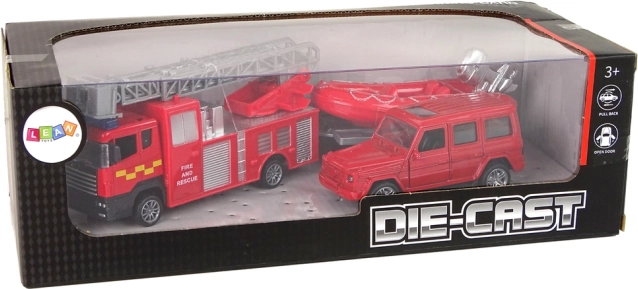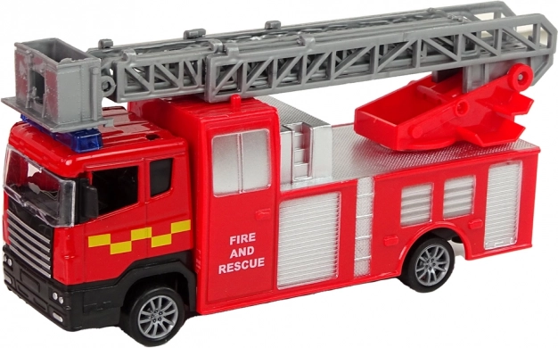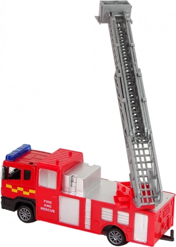 Hasičský vůz s roztažitelným žebříkem je věrnou kopií skutečného vozidla a díky frikčnímu pohonu se dynamicky pohybuje po povrchu. Auto s otevíratelnými dveřmi je navíc vybaveno motorickým pohonem.