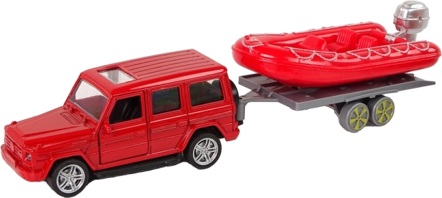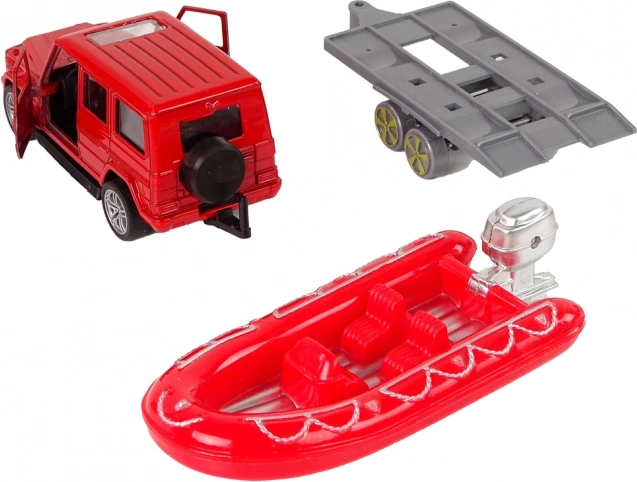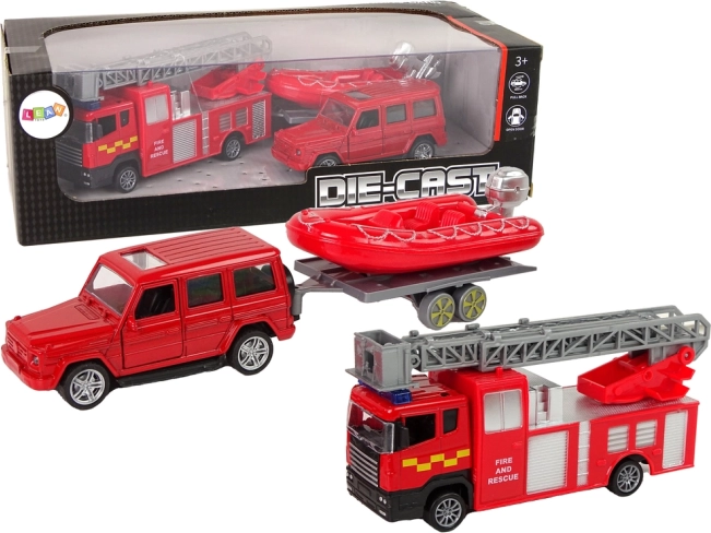 Nafukovací člun na přívěsu umožňuje napojení na vybrané vozidlo dle typu záchrany. Sadu doplňují vzdělávací karty s různými typy hasičských vozidel.