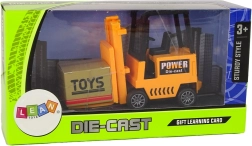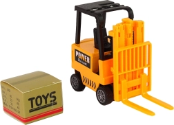 Oranžový frikční vysokozdvižný vozík je odolná a bezpečná hračka, vyrobená z plastu, který je odolný vůči poškození a snadno se čistí. Díky kompaktním rozměrům je ideální pro dětské ručičky, což zajišťuje pohodlnou a jednoduchou zábavu.
