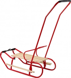 Odolné kovové sáňky s opěrkou a tlačnou rukojetí přinášejí dětem i rodičům bezpečnou zimní zábavu. Nabízejí stabilní ocelový rám, dřevěné sedátko, odnímatelné díly a silný tažný popruh. Lehká, ale pevná konstrukce s nosností 75 kg v atraktivní červené barvě.