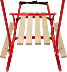 Červený ocelový rám je pevný a odolný vůči korozi, dřevěné prvky dodávají nadčasový vzhled. Ideální na každodenní zimní radovánky.