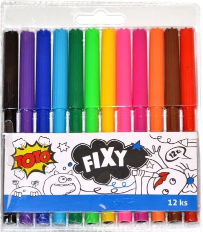 Fixy jsou navrženy tak, aby podporovaly kreativitu a rozvoj jemné motoriky díky standardnímu vláknovému hrotu, který zajišťuje plynulé a přesné kreslení na papírové povrchy.