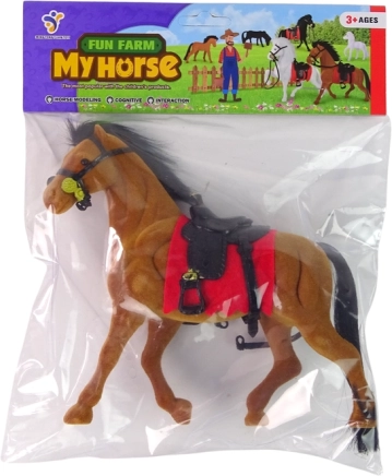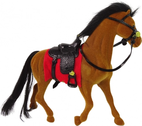 Tato sametová figurka hnědého koně je vyrobena z kvalitních, na dotek velmi příjemných materiálů. Černé sedlo a červený čabrak dodávají realistický vzhled a podporují kreativní hry na farmu či jezdecký klub. Díky robustnímu provedení je vhodná pro každodenní hraní.