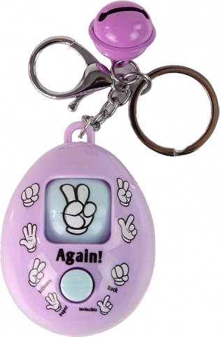 Zábavný a barevný přívěsek na klíče ve tvaru vajíčka s integrovanou hrou kámen, nůžky, papír. Stačí stisknout středové tlačítko a zobrazí se náhodný symbol. Ideální jako stylový doplněk na klíče, batoh nebo kabelku, s praktickým kroužkem a karabinou pro snadné připnutí a malým zvonečkem, který pomůže klíče rychle najít.