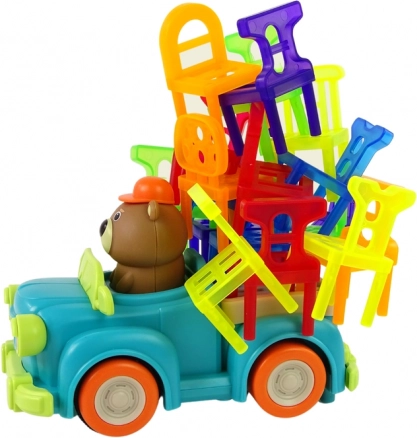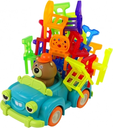 Zábavná rodinná hra, ve které na pohybující se autíčko skládáte barevné židličky do co nejvyšší věže. Procvičuje jemnou motoriku, koordinaci ruka–oko, logické myšlení a trpělivost. Díky 48 židličkám v pestrých barvách a jednoduchým pravidlům je ideální pro děti od 3 let i dospělé.