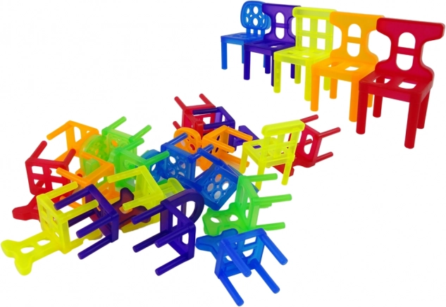 Židličky v šesti výrazných barvách podporují rozlišování barev, trénují jemnou motoriku a umožňují skládat tvary, věže i vzory.