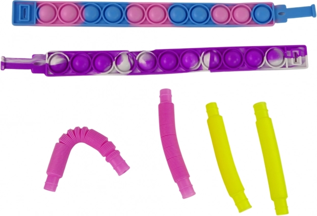 Flexibilní pop tuby a natahovací hady lze roztahovat, propojovat a tvarovat – skvělé pro trénink motoriky a uvolnění energie.