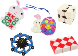 Kompletní sada od kostek přes pop it až po skákací hračky. Perfektní mix pro smyslové hraní, odměny a dárky do velikonočních košíků.