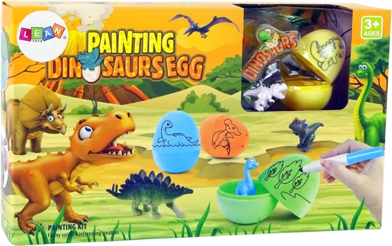 - 12× barevné vajíčko k malování, 6× figurka dinosaura, 4× popisovač, 1× podložka se světem dinosaurů, 1× stojánek na malování