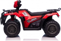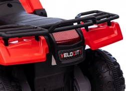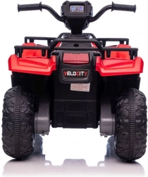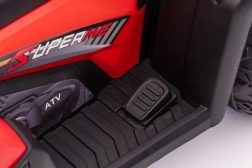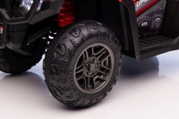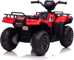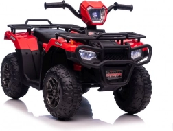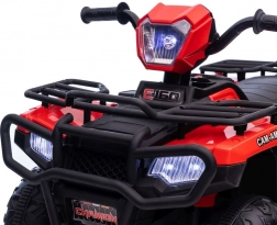 Elektrická čtyřkolka JC915 v červené barvě je navržena pro dětskou radost z jízdy i bezpečí. Odolné zpracování a stabilní široká kola zajišťují jistotu na různých površích, zatímco realistické prvky jako přední světlo, palubní panel a ergonomická řídítka podporují přirozené ovládání.