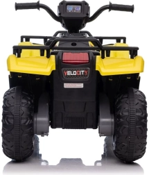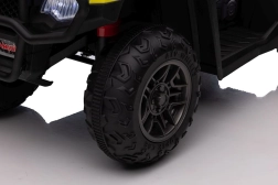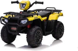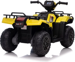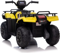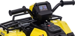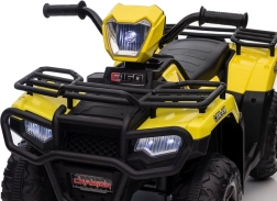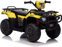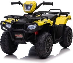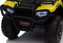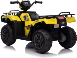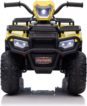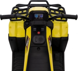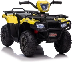Tato žlutá a černá čtyřkolka na baterie je perfektním dárkem pro aktivní děti od 3 let. Je vybavena velkými, robustními koly pro jízdu na různých terénech a realistickými detaily, které přispívají k její autenticitě.