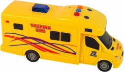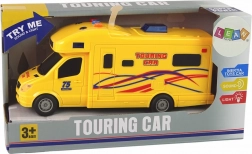 Žlutý karavan pro děti přináší porci prázdninové zábavy na každý den. Díky frikčnímu pohonu stačí přitlačit, natáhnout dozadu a pustit – a vůz vyrazí vpřed. O realističtější zážitek se postarají světelné efekty s modrými LED a zvukové efekty startu, jízdy i couvání. Robustní zpracování, gumové pneumatiky a kompaktní rozměry z něj dělají ideální hračku na doma i na cesty.