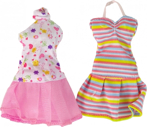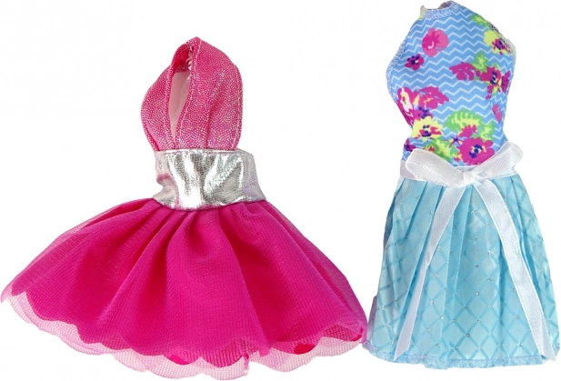 Součástí jsou 4 vyměnitelné šaty (páskové, večerní růžové s třpytkami, modré s květinovým vzorem a mašlí, jemné růžovo-bílé s květy a srdíčky), dvě kabelky, klobouk a náhradní boty. Vše je přehledně uloženo v dárkovém balení s průhledem, které potěší na první pohled.