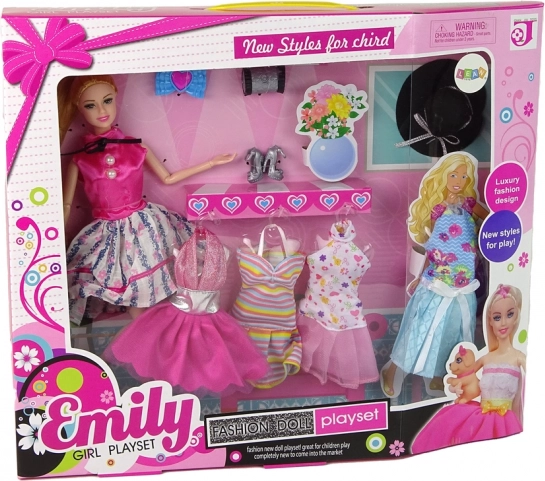 Panenka Emily potěší každou malou stylistku. Má elegantní outfit s růžovým topem a květovanou rozšířenou sukní, které doplňují černé lodičky. Díky pohyblivým kloubům ji snadno nastavíte do různých póz. Sada zahrnuje více šatů a doplňků, takže každý den může vypadat jinak.