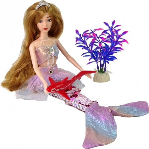 Ocas lze jednoduše sejmout a panenku postavit na nožičky, takže si děti užijí dva způsoby hry – jako mořskou vílu i jako klasickou panenku. Součástí balení je dekorativní červený žralok a barevná akvarijní rostlinka, které rozšíří možnosti příběhů a fantazijní hry.