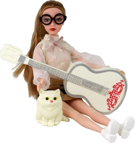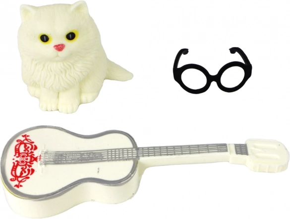 - Kompletní sada doplňků: panenka, kytara, brýle a koťátko.