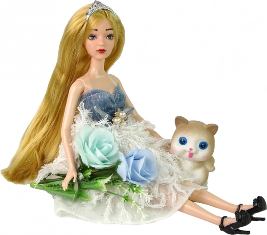 Součástí balení je hebké koťátko a dekorativní květiny, které rozšiřují možnosti hry a dělají z panenky ideální dárek.