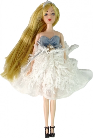 Okouzlující panenka EMILY v elegantních bílomodrých šatech s třpytkami a peříčkovým efektem potěší malé milovnice módy. Set obsahuje roztomilé koťátko a dekorativní květiny. Panenka má dlouhé blond vlasy s tiárou, výrazné modré oči a stylové boty. Skvělý dárek podporující kreativní hru a vyprávění příběhů.