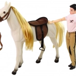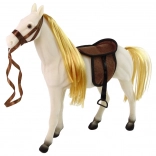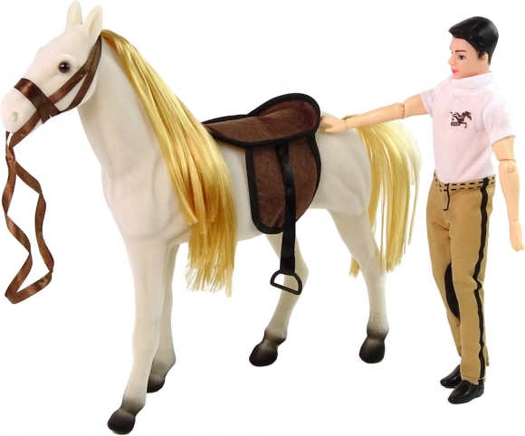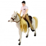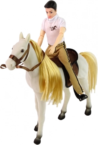 Objevte svět dobrodružných her s touto jezdeckou panenkou a bílým koněm! Perfektní sada pro každého malého nadšence koní, která rozšiřuje možnosti hraní a rozvíjení fantazie. Hračka zahrnuje panenku s ohebnými končetinami pro různé herní polohy a stylový outfit, dokonale kopírující jezdeckou módu. Bílý kůň vyrobený z příjemného materiálu má realistický vzhled, včetně sedla a uzdy.