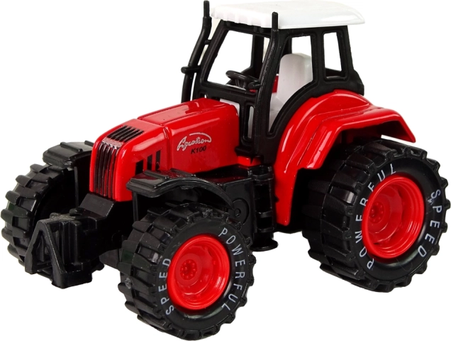 Karoserie traktoru je vyrobena z odolného kovu, zatímco podvozek a kola jsou plastové, což zajišťuje dlouhou životnost a odolnost při hře.