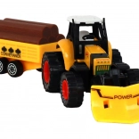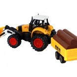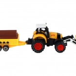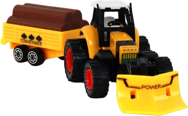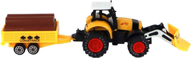 Traktor je vybaven frikčním pohonem, který umožňuje snadné ovládání pohybu traktoru. Děti si mohou hrát na farmu a přepravovat různé materiály na přívěsu, který je vybaven imitacemi kmenů stromů.