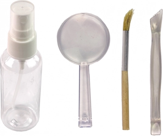Obsahuje vše potřebné pro malého archeologa, včetně lahve na vodu, štětce, lupy a nástroje pro vykopávání.