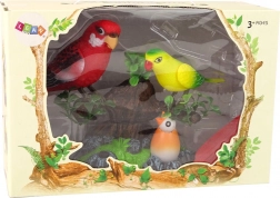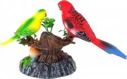 V balení najdete dvě papoušky – červenou a žlutou – sedící na větvi stromu a malé ptáčátko ve skořápce. Ptáčci na větvích vydávají různé zvuky a pohybují se, což vám umožní cítit se jako na lůně přírody, zatímco ptáček září barevným světlem. Stačí stisknout černé tlačítko, aby se hračka aktivovala.