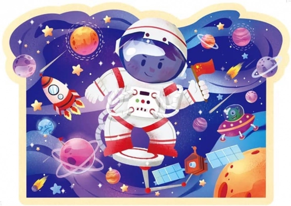 Ilustrace obsahují postavičku malého kosmonauta v prostředí plném planet, raket a satelitů, které dítě vtáhnou do barevného a detailního vesmírného dobrodružství. Balení v pohodlné kruhové tubě umožňuje snadné přenášení a skladování, ideální pro použití doma i na cestách.
