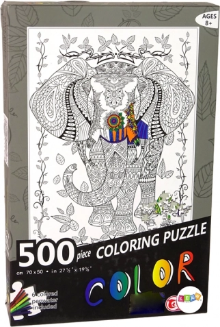 Ponořte se do světa tvořivé zábavy se 500 černobílými puzzle dílky a 6 fixy pro jejich vybarvení. Složte obrázek slona obklopeného listy a pyšně ho vystavte jako nástěnnou dekoraci nebo podložku na stůl.