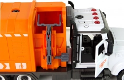 Tento detailně zpracovaný popelářský vůz umožní dětem vcítit se do role pracovníků svozu odpadu. Realistické prvky jako otevírací přední i zadní dveře, pohyblivý zvedák na popelnice a robustní kola zaručí dlouhé hodiny zábavy. Třecí pohon zajistí plynulý pohyb po podlaze bez nutnosti bateriového pohonu jízdy.