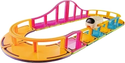 Objevte kreativní svět stavění s magnetickými kostkami a vytvořte si vlastní podvěsnou závodní dráhu se 29 díly. Barevné magnetické dlaždice a komponenty se snadno spojují, podporují jemnou motoriku, koordinaci a představivost dětí. Součástí je miniletadlo, které se po sestavené trati řítí vpřed, a také knížka nápadů pro rychlý start kreativní hry.