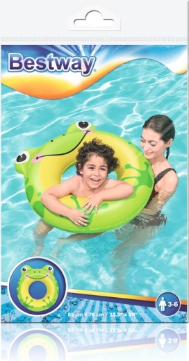 Roztomilý nafukovací kruh ve tvaru žabky od značky Bestway zpříjemní dětem pobyt u vody a podpoří jejich sebejistotu při plavání. Díky výraznému designu je dítě lépe viditelné, odolný PVC materiál zaručuje dlouhou životnost a součástí balení je i opravná záplata. Vhodné pro děti 3–6 let.