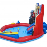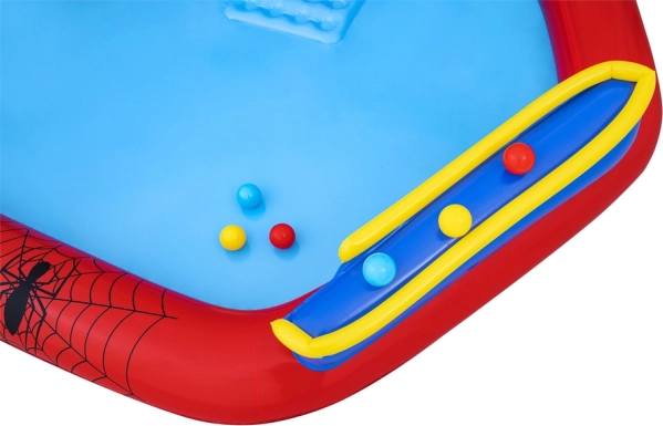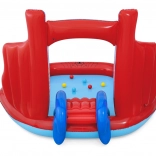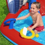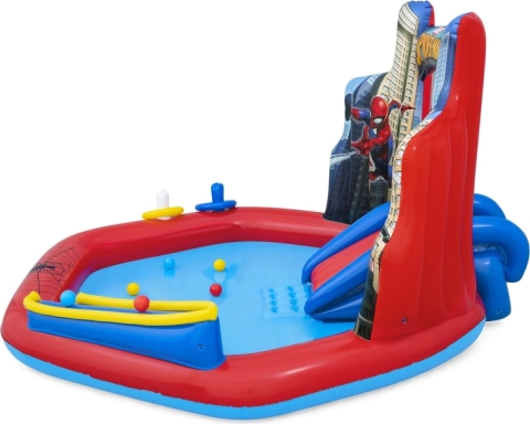 Toto nafukovací vodní hřiště od společnosti Bestway zahrnuje vše, co je potřeba pro skvělou zábavu na slunci. Ve slunečných měsících se děti rády osvěží v bazénu a tento produkt nabízí ještě více - díky skluzavce a dalším zábavným prvkům to bude pravé centrum letní zábavy. Silné PVC sytých barev zajišťuje odolnost a dlouhodobou životnost. Mezi hlavní prvky patří skluzavka zakončená měkkým polštářem a vodní sprchy spustitelné napojením na zahradní hadici.