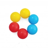 Tento set zahrnuje: barevné nafukovací kruhy, barevné míčky, nafukovací skluzavku pro míčky a nafukovací kolíky pro další zábavu.