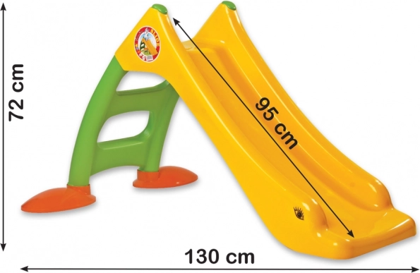 Skluzavku lze snadno a rychle sestavit na rovném povrchu ve vzdálenosti asi 2 metry od ostatních zařízení. Děti se na ni mohou dostat pomocí tří stupňového žebříku v hnědé barvě. Skluz pak probíhá po zelené části skluzavky. Výška celé skluzavky od země je 75 cm! Výrobek neobsahuje žádné ostré hrany, je vyroben z kvalitních plastových materiálů. K žebříku jsou připevněny nožičky ve žluté barvě.