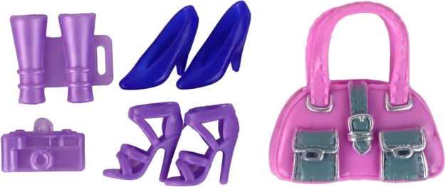 V setu je také několik módních kousků, včetně dvou dalších šatů a kalhot s blůzou, aby panenka mohla měnit styl podle nálady. Dva páry bot, kabelka, malý fotoaparát a dalekohled doplňují praktické příslušenství pro různé příležitosti a podněcují dětskou fantazii k plánování výletů a fotografických sezení.