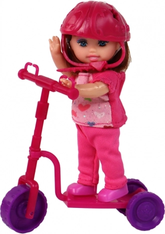 V sadě naleznete dvě panenky. Jedna z větších panenek nosí fialovou helmu, zatímco menší panenka má roztomilou růžovou helmu.